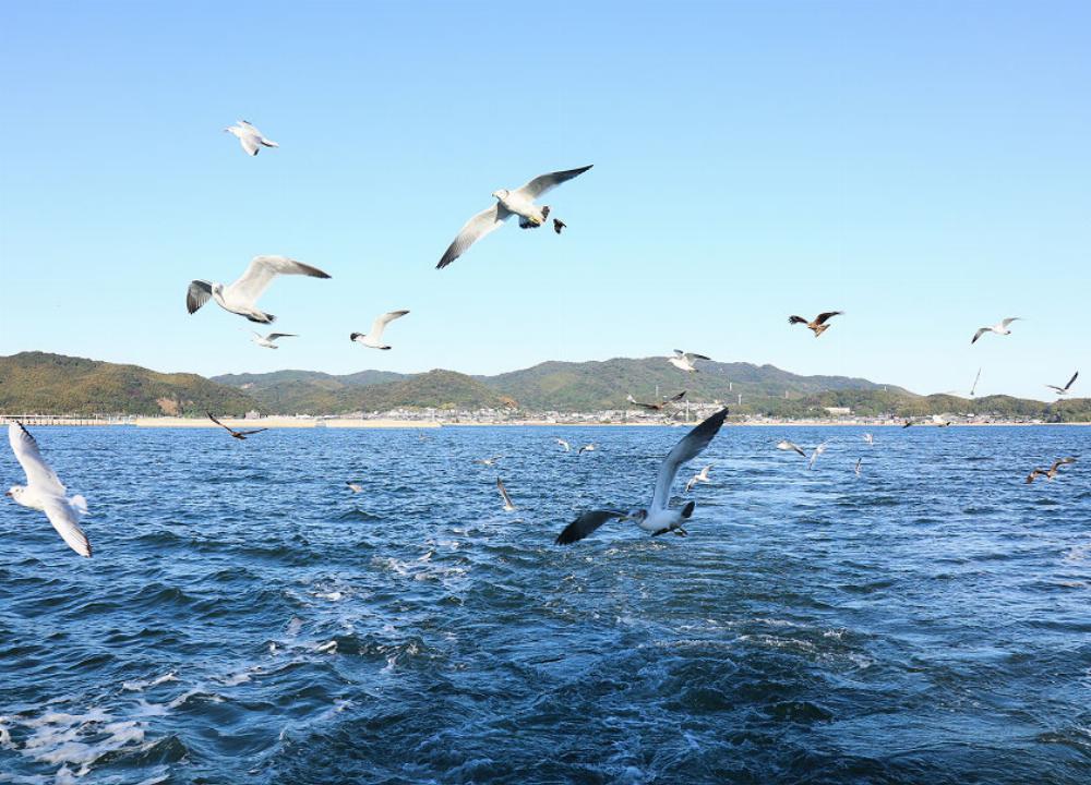三河湾クルーズスナメリウォッチングやサンセットクルーズなどのプランがあり、海と空が運ぶ心震える感動のひとときを過ごすことができます。春と秋には船上デッキから可愛らしい「うみねこ」に餌付をすることもできます。