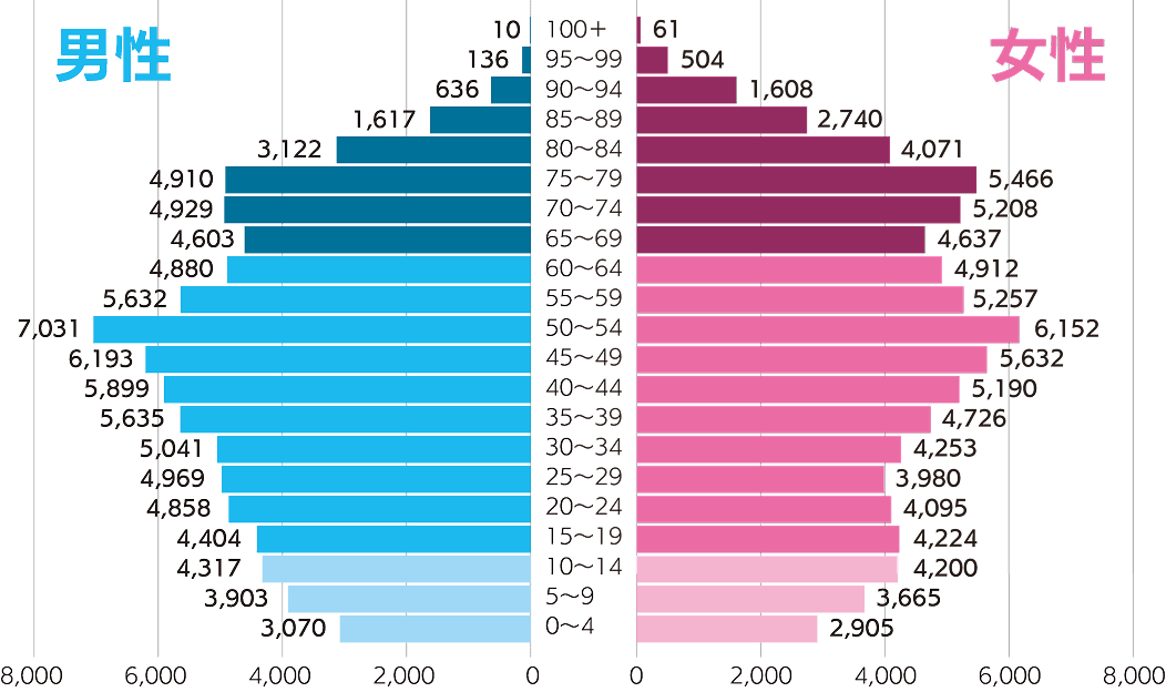西尾市の総人口は169,284人(令和7年4月1日時点)、30〜50代の働く世代が厚く、その子ども世代もいるため、地域を支える現役層がしっかりいます。