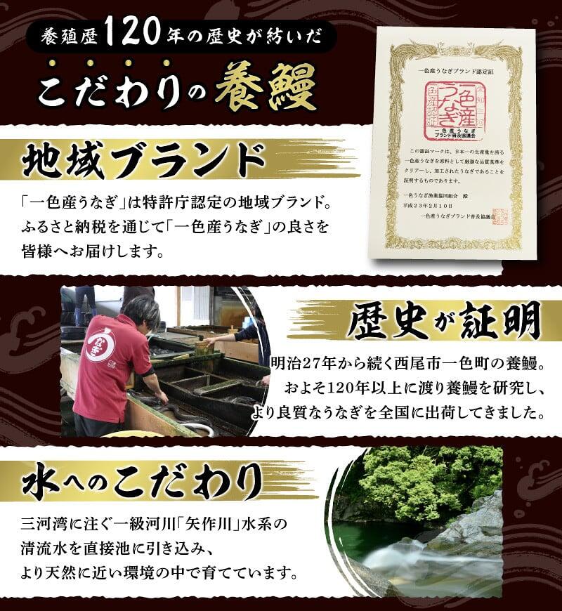 | 容量 | ・一色産うなぎ 蒲焼2尾(約155g/尾)原産地:愛知県西尾市 ・山椒付きタレ2袋(15ml/袋)製造地:愛知県知多郡 |