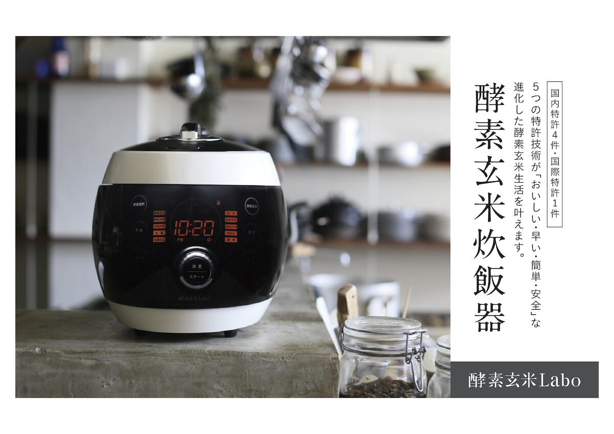 玄米に小豆と塩を入れて高温高圧で炊き上げた後、保湿しながら熟成させていく"酵素玄米"。甘みがあって味わい深く、モチモチ。柔らかく消化吸収が良いのが特徴。熟成させるとおいしさも育つなど、その魅力がいま注目されています。ただ、毎日に取り入れるには、時間も手間もハードルが高そう…と、そんなイメージを覆す、進化した炊飯器がこちら。まさに酵素玄米のために、時短や操作性、機能性まで追求した炊飯器が「酵素玄米Labo」です。(特許取得済み)