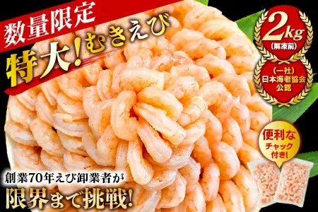 大容量1.6kg!大粒の背わた処理済みむきえびです。