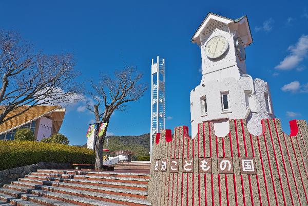 「あさひが丘」と「ゆうひが丘」の2つの山からなる自然を生かした大規模な児童総合遊園。広大な園内には豊かな自然がたくさんあり、四季折々で来園者を楽しませてくれます。園内には、芝生が一面に広がる広場をはじめ、キャンプ場(要予約)や巨大遊具“ドラゴン”“アリジゴク”というオリジナル遊具、16基のアスレチック遊具などがあり、思い思いの過ごし方ができます。そして、開園時に合わせて新造された本物の蒸気機関車の“こども汽車”は当園のシンボルとして、こども達の笑顔を乗せて走っています。