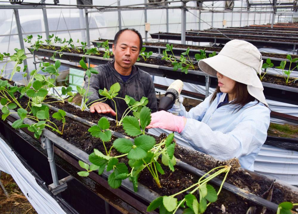 さらに、JA西三河いちご部会の部会員数は80人を越え、県内でも屈指の生産規模を誇り仲間が多いことも魅力です。いちごスクールを通じて、受け入れ農家との強いつながりを築けるので、卒業後も相談を重ねながら栽培の不安を解消できます。イチゴ農家として独り立ちしたいという熱い気持ちと覚悟があれば後押しする体制が整っています。なお、応募者の中から選考があります。 -